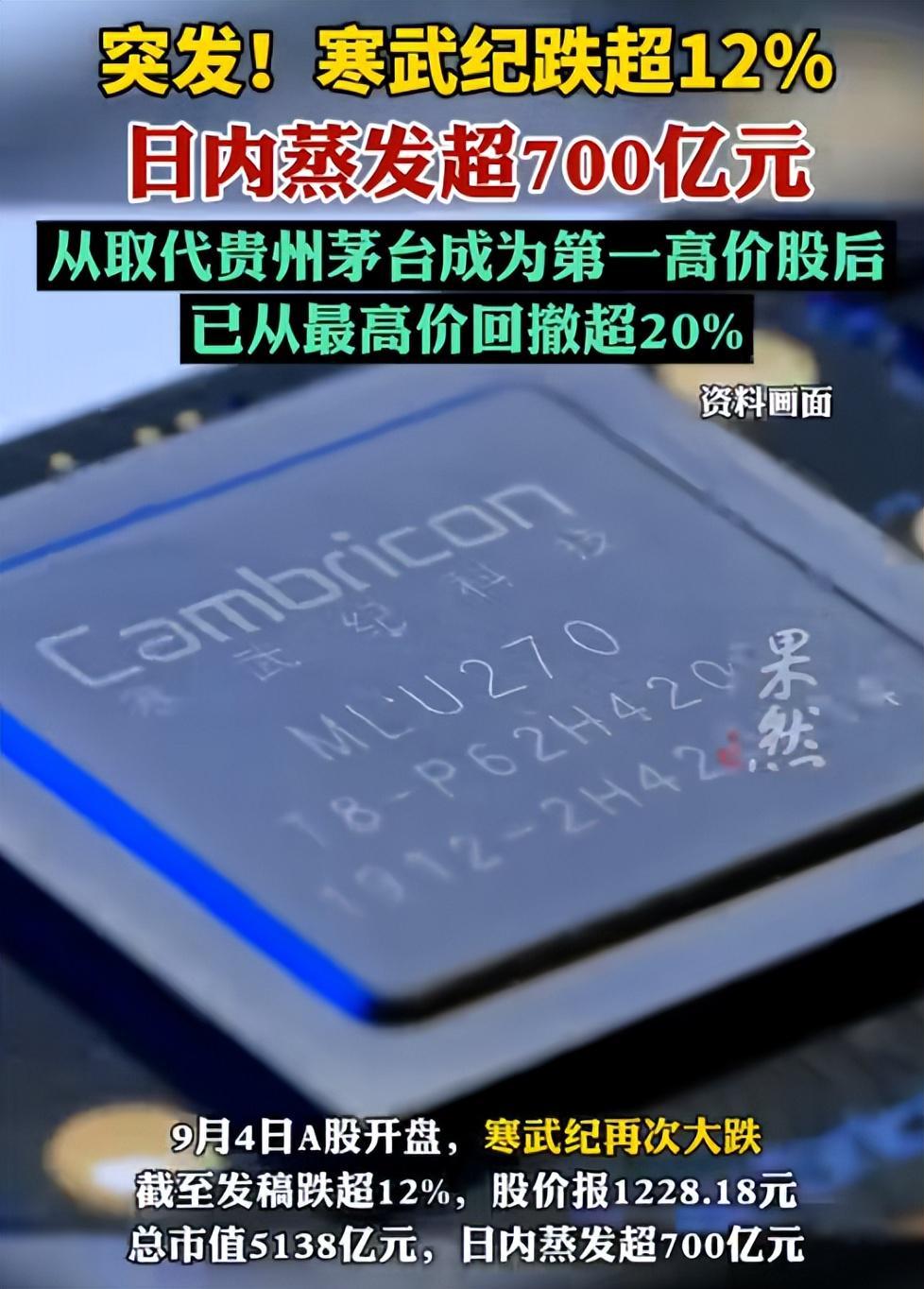 作品声明:内容取材于网络本文陈述所有内容皆有可靠信息来源,具体资料赘述在文中结尾曾被冠以“中国英伟达”之称的寒武纪,在2025年9月初遭遇了惊人的股价暴跌。短短一天内,其市值就蒸发了超过700亿元,而从最高点的近7000亿市值计算,寒武纪在不到一周时间里跌去了1600多亿。这家被称为全球A...